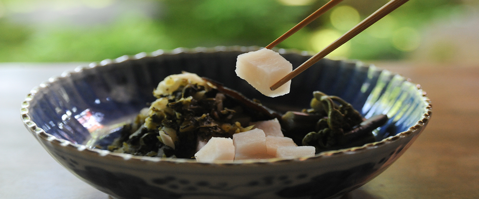 京都・上賀茂の伝統漬物「すぐき」。乳酸発酵による他に例えられない独特の酸味が愛されているお漬物です。